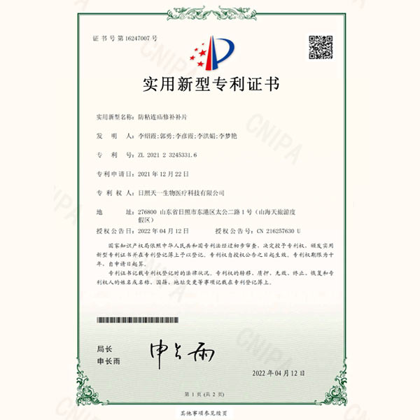 2011年,天一生物與山東省藥學(xué)科學(xué)院建立產(chǎn)學(xué)研合作,聯(lián)合研發(fā)疝修補(bǔ)類器械。該產(chǎn)品研發(fā)后曾在首都醫(yī)科大學(xué)附屬北京朝陽醫(yī)院、首都醫(yī)科大學(xué)附屬北京同仁醫(yī)院進(jìn)行臨床試驗,試驗結(jié)果表明,本公司產(chǎn)品組合形狀更符合臨床使用要求,方便臨床醫(yī)生術(shù)中操作,目前共擁有四大系列產(chǎn)品,臨床使用效果得到了行業(yè)眾多專家的一致好評。